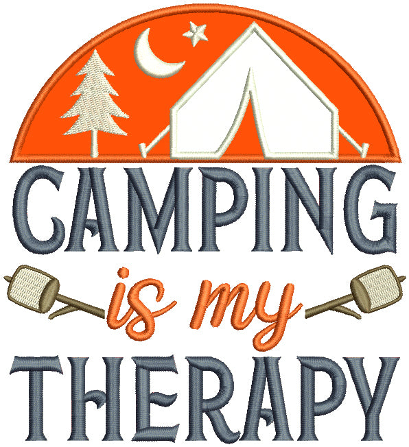 Camping Is My Therapy Applique Machine Embroidery Design Digitized Pattern