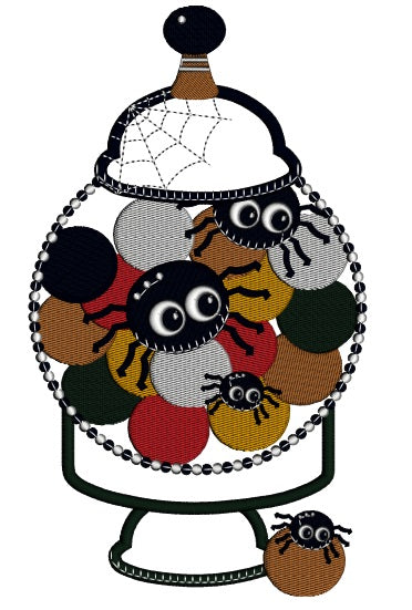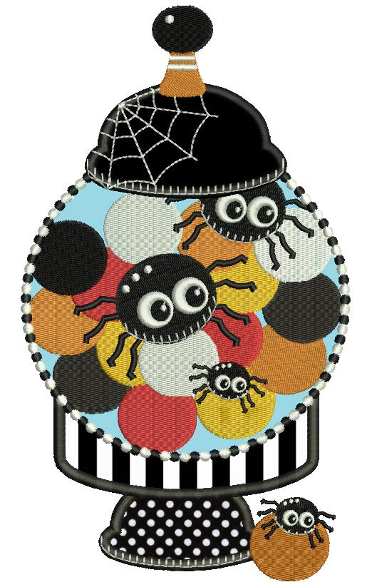 Candy Jar Full Of Spiders Halloween Applique Machine Embroidery Design Digitized Pattern