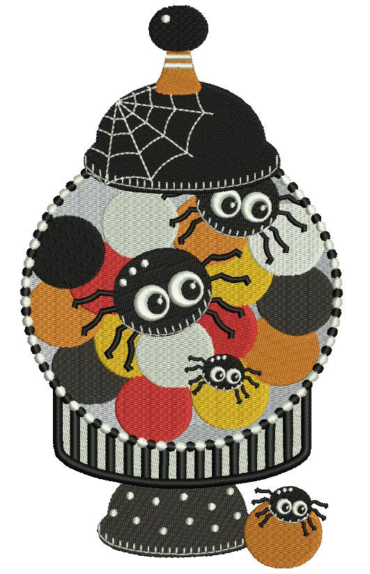 Candy Jar Full Of Spiders Halloween Filled Machine Embroidery Design Digitized Pattern