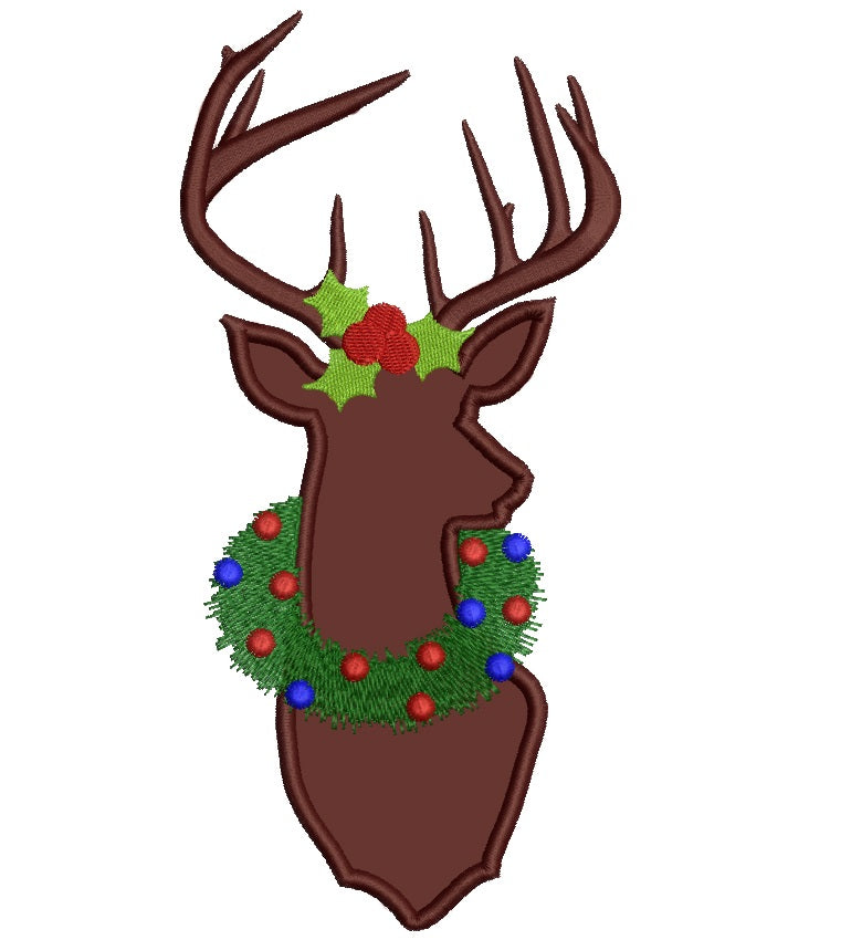 Christmas Buck with big Antlers Applique Hutning Machine Embroidery Country Digitized Design Pattern