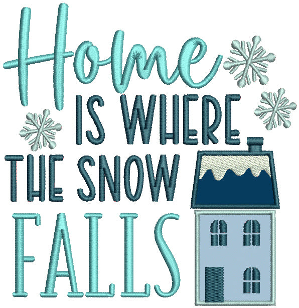 Home Is Where The Snow Falls Christmas Filled Machine Embroidery Design Digitized Pattern - 15543