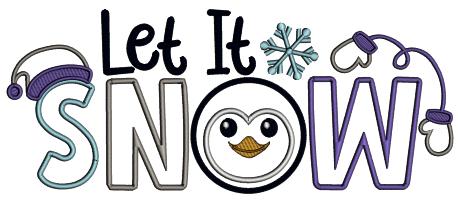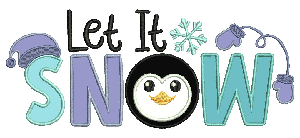 Let It Snow MIttens And Cute Penguin Applique Machine Embroidery Design Digitized Pattern - 16410