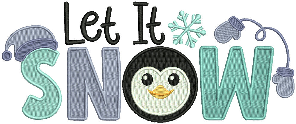 Let It Snow MIttens And Cute Penguin Filled Machine Embroidery Design Digitized Pattern - 16409