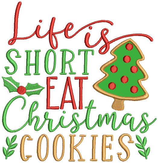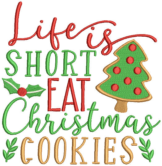 Life Is Short Eat Christmas Cookies Filled Machine Embroidery Design Digitized Pattern - 11126