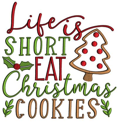 Life Is Short Eat Christmas Cookies Applique Machine Embroidery Design Digitized Pattern - 11127