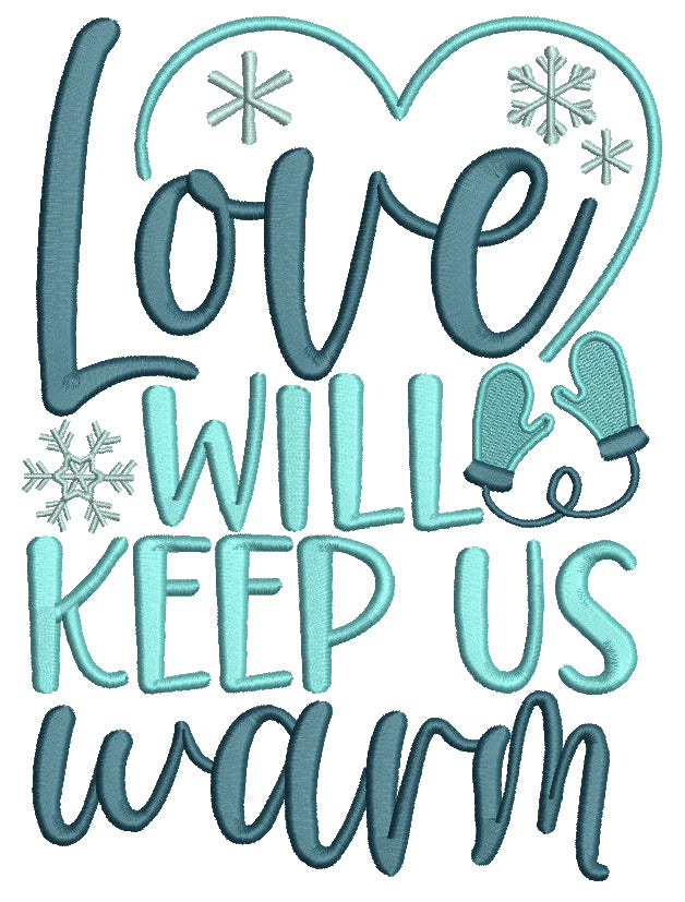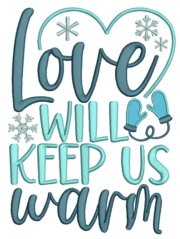 Love Will Keep Us Warm Snow Mittens Christmas Applique Machine Embroidery Design Digitized Pattern - 16406
