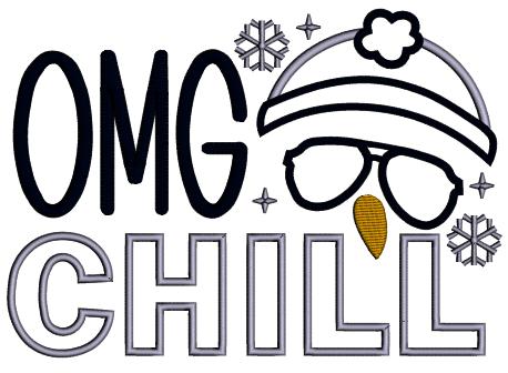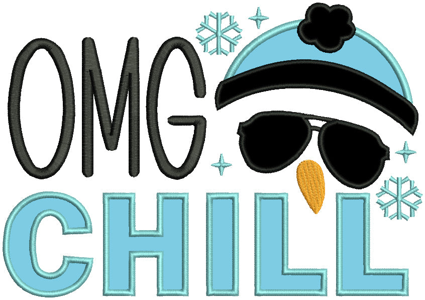 OMG Chill Snowman Christmas Applique Machine Embroidery Design Digitized Pattern - 16408