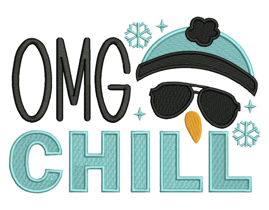OMG Chill Snowman Christmas Filled Machine Embroidery Design Digitized Pattern - 16407