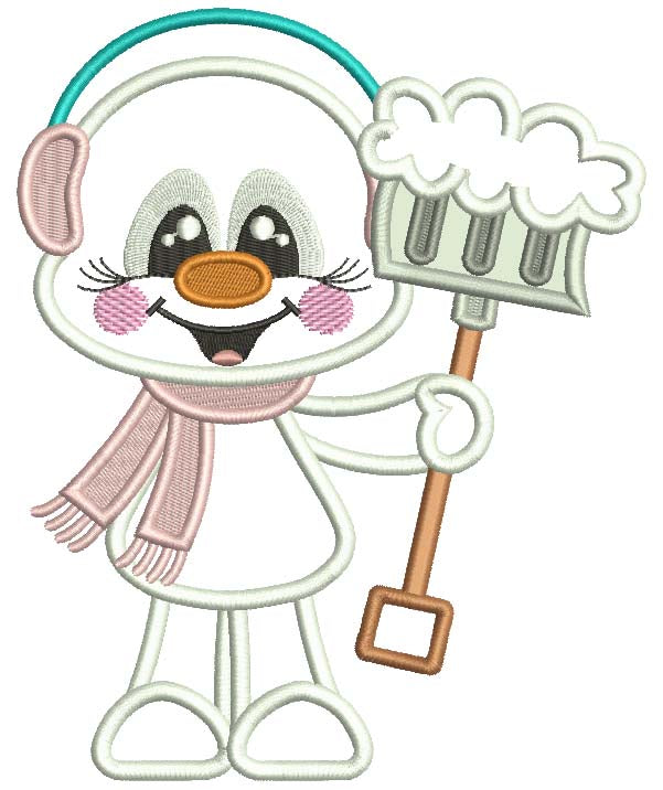 Snowman With a Shovel Christmas Applique Machine Embroidery Design Digitized Pattern - 12850