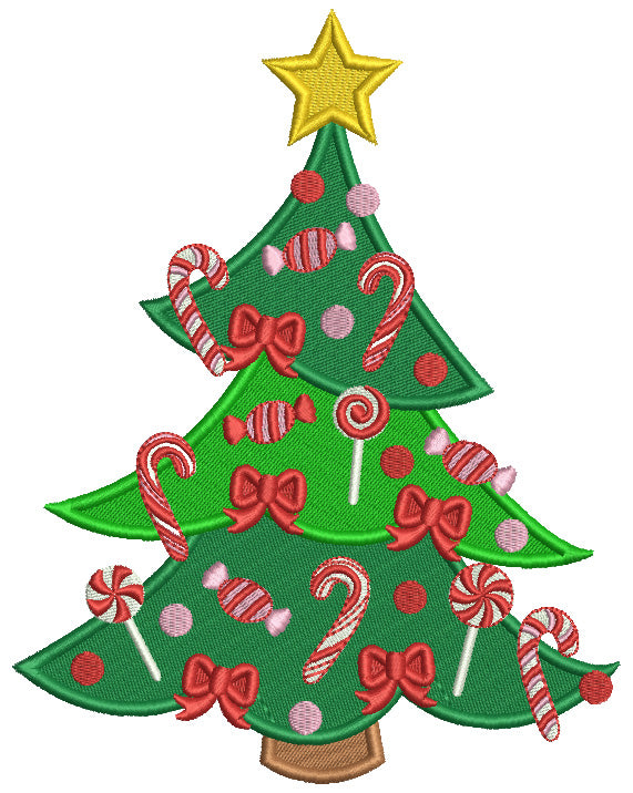 Christmas Tree With Candy Cane Ornaments Filled Machine Embroidery Design Digitized Pattern
