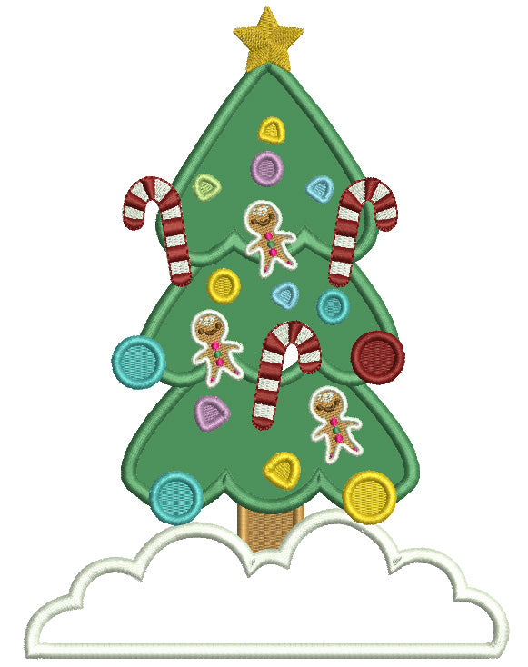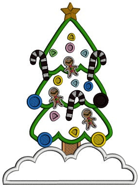 Christmas Tree With Candy Canes Applique Machine Embroidery Design Digitized Pattern