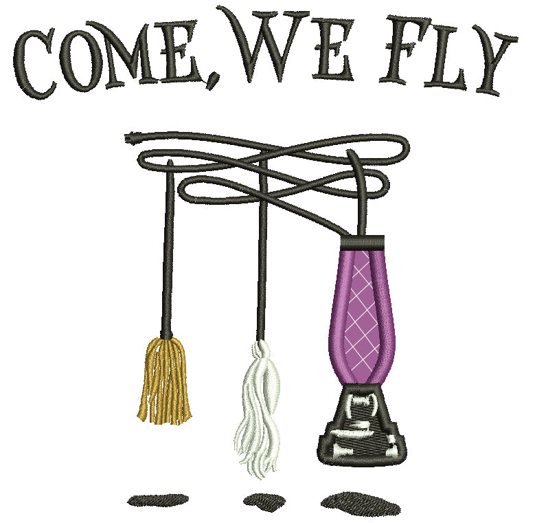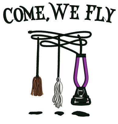 Come Fly With Me Broom And Vacuum Cleaner Halloween Applique Machine Embroidery Design Digitized Pattern