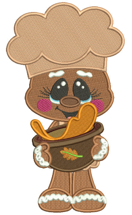 Cook Gingerbread Man Making Pumpkin Pie Fall Filled Thanksgiving Machine Embroidery Design Digitized Pattern