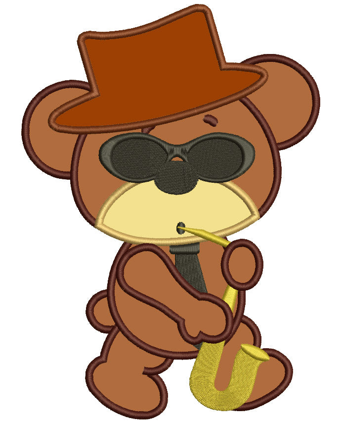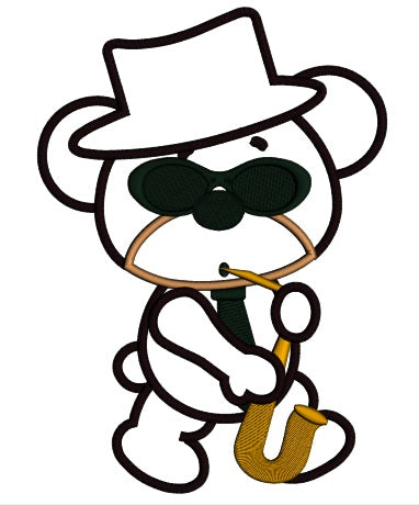 Cool Jazz Bear With Saxophone Applique Machine Embroidery Digitized Design Pattern