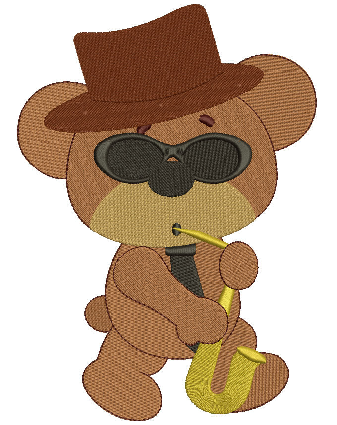 Cool Jazz Bear With Saxophone Filled Machine Embroidery Digitized Design Pattern