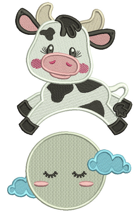 Cow Jumping Over The Moon And Clouds Filled Machine Embroidery Design Digitized Pattern