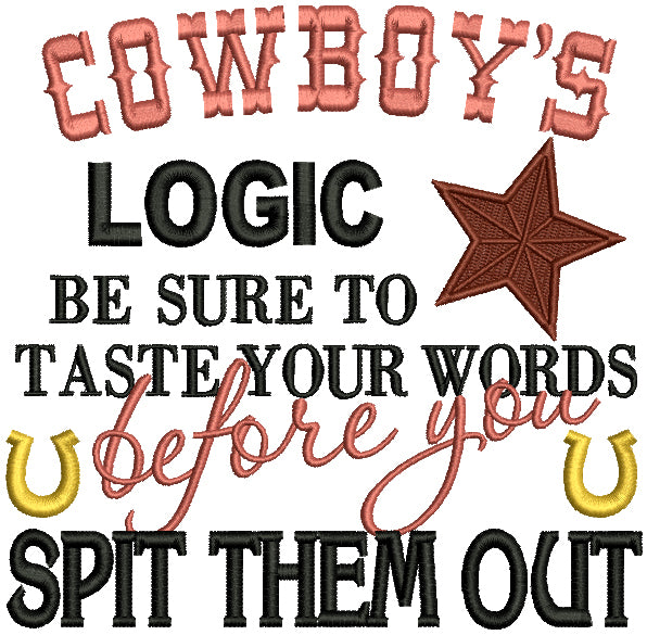Cowboy's Logic Be Sure To Taste Your Words Before You Spit Them Out Filled Machine Embroidery Design Digitized Pattern