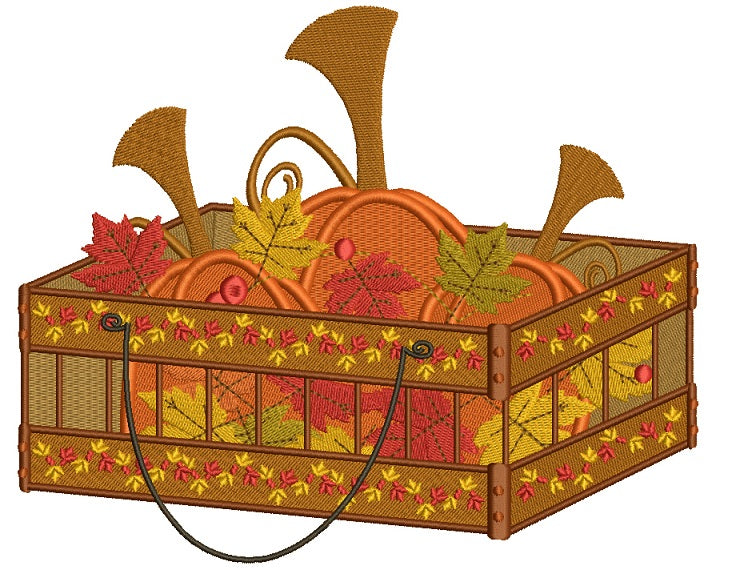Crate With Pumpkins Fall Thanksgiving Filled Machine Embroidery Digitized Design Pattern