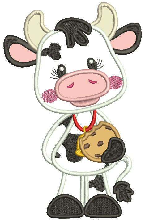 Cute Baby Cow Holding a Neckless Cookie Applique Machine Embroidery Design Digitized Pattern - 11946