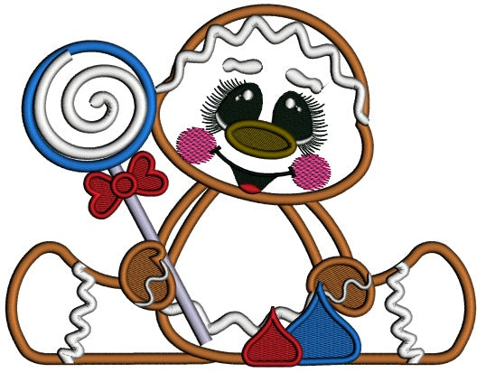 Cute Baby Gingerbread Girl Holding a Lollypop Applique Machine Embroidery Design Digitized Pattern