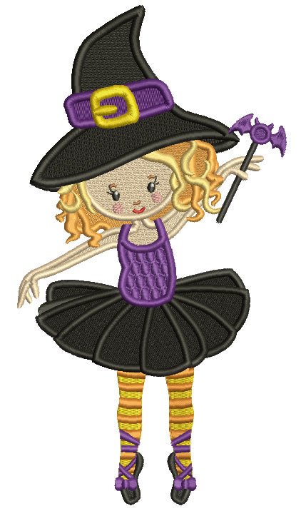 Cute Ballerina Witch With a Bat Wand Halloween Filled Machine Embroidery Design Digitized Pattern