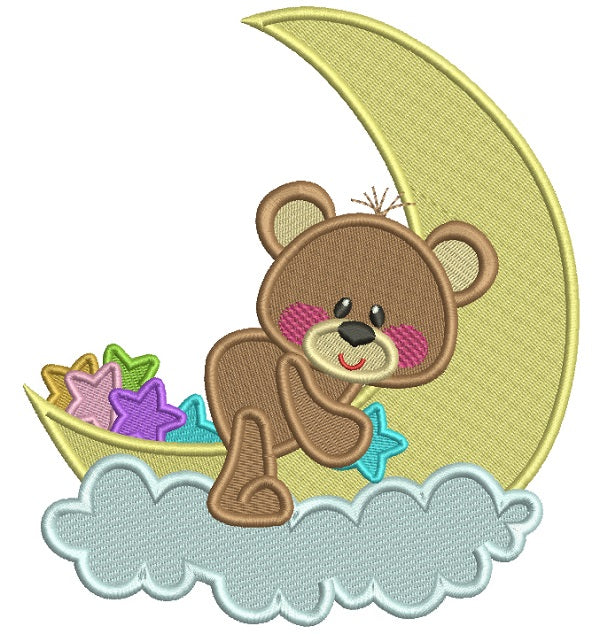 Cute Bear Sitting On The Moon Filled Machine Embroidery Design Digitized