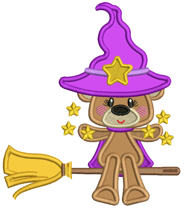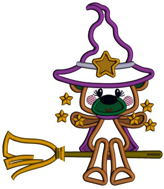 Cute Beat Witch On a Broom Halloween Applique Machine Embroidery Design Digitized Pattern