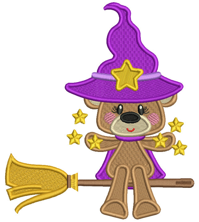 Cute Beat Witch On a Broom Halloween Filled Machine Embroidery Design Digitized Pattern