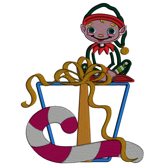Cute Boy Elf With Presents Christmas Applique Machine Embroidery Digitized Design Pattern