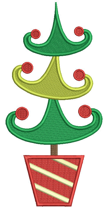 Cute Christmas Tree Filled Machine Embroidery Digitized Design Pattern