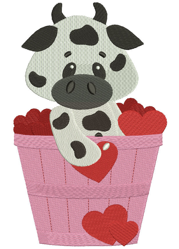 Cute Cow in the Bucket with Flowers Filled Machine Embroidery Digitized Design Pattern