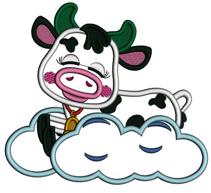 Cute Cow Sleeping In The Clouds Applique Machine Embroidery Design Digitized Pattern