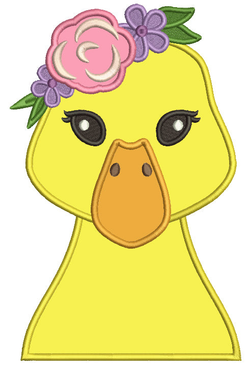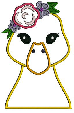 Cute Duck Head With Flowers Applique Machine Embroidery Design Digitized Pattern