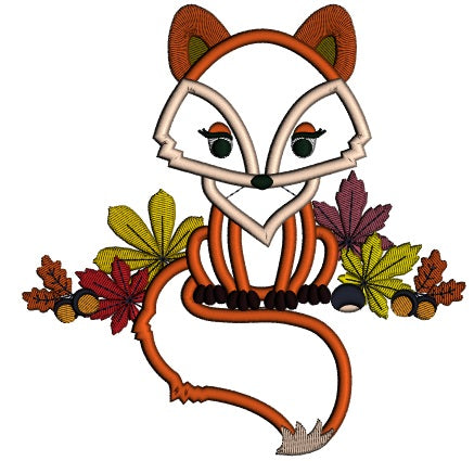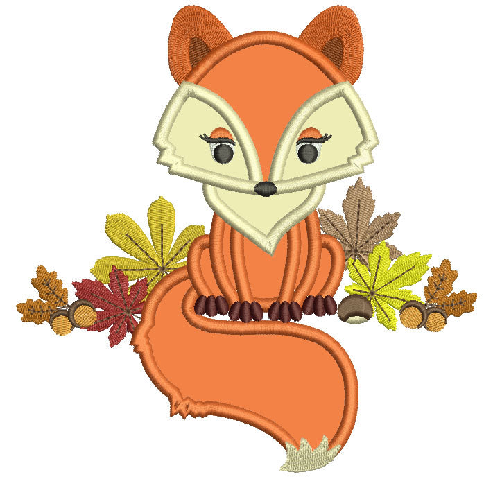 Cute Fall Fox Applique Machine Embroidery Design Digitized Pattern