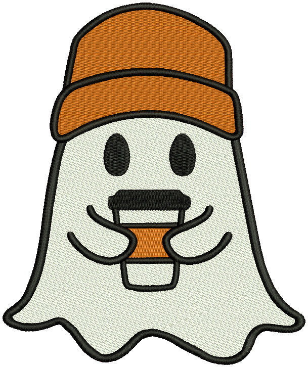 Cute Ghost Holding a Cup Of Coffee Filled Machine Embroidery Design Digitized Pattern