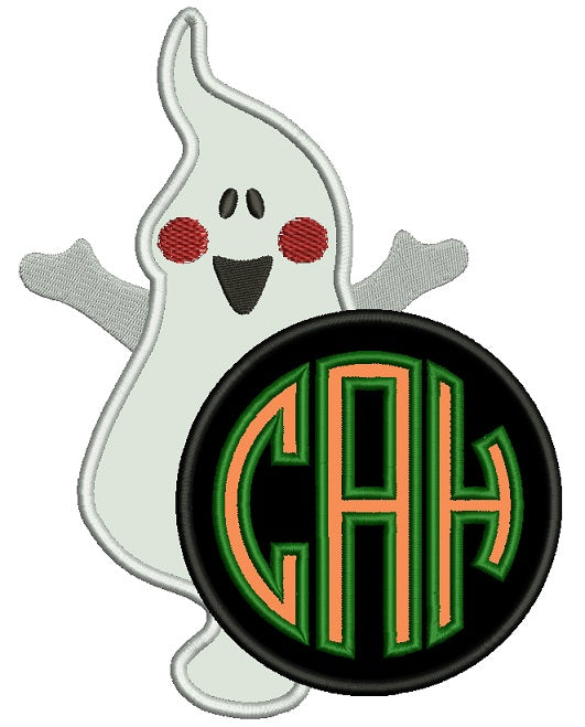 Cute Ghost Monogram Halloween Applique Machine Embroidery Design Digitized Pattern