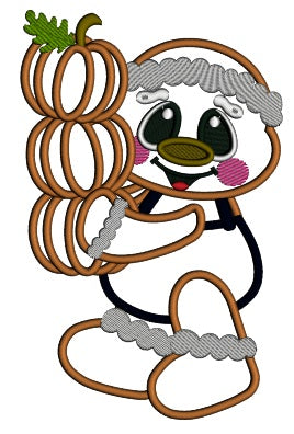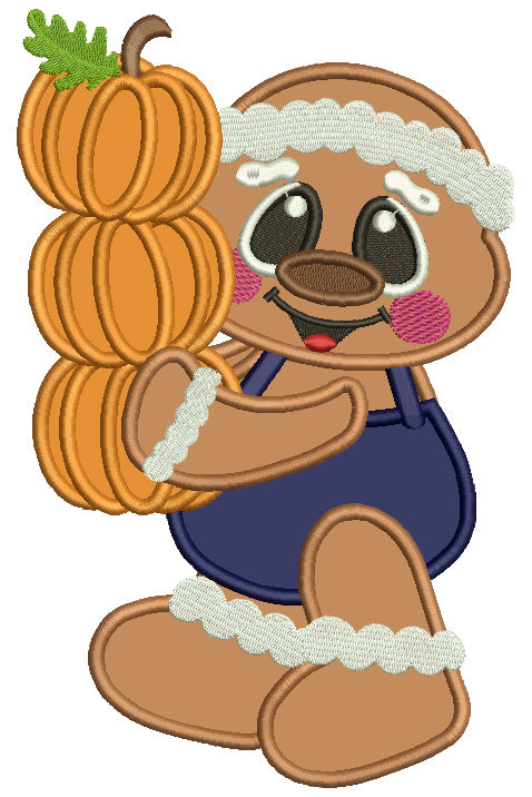 Cute Gingerbread Man Holding Three Pumpkins Thanksgiving Applique Machine Embroidery Design Digitized Pattern