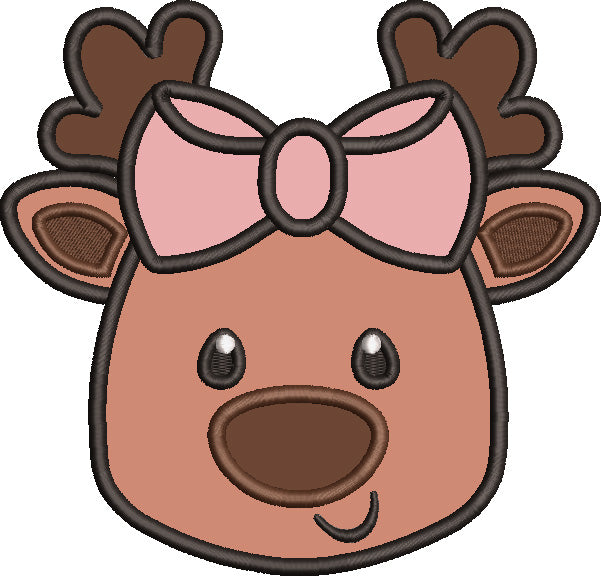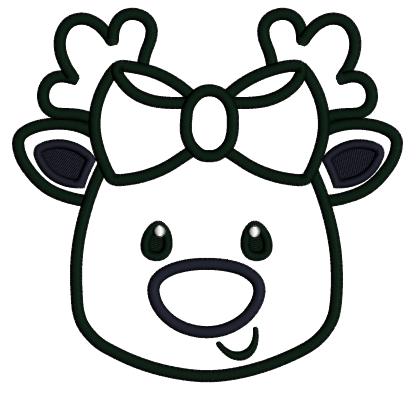 Cute Girl Baby Reindeer With a Big Hair Bow Christmas Applique Machine Embroidery Design Digitized Pattern