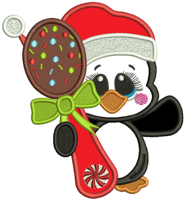 Cute Little Baby Penguin Wearing Santa Christmas Applique Machine Embroidery Design Digitized Pattern