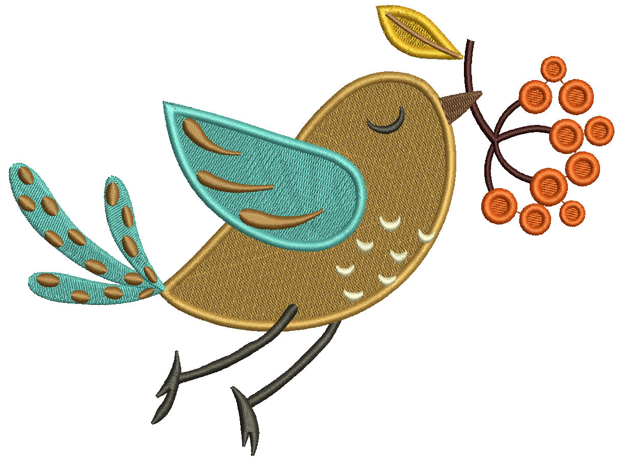 Cute Little Bird WIth Winter Berry Christmas Filled Machine Embroidery Design Digitized Pattern