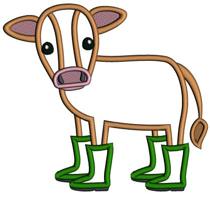 Cute Little Calf Wearing Rain Boots Applique Machine Embroidery Design Digitized Pattern