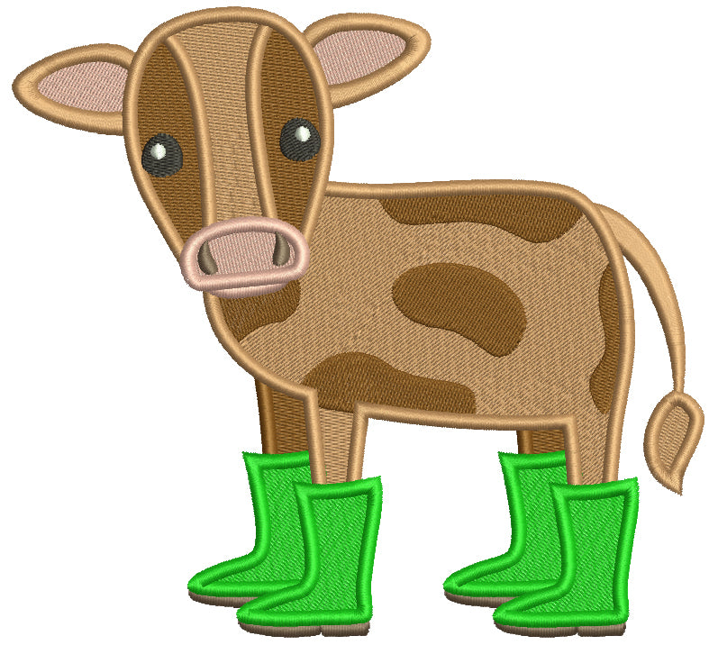 Cute Little Calf Wearing Rain Boots Filled Machine Embroidery Design Digitized Pattern