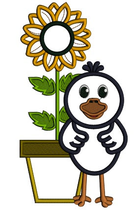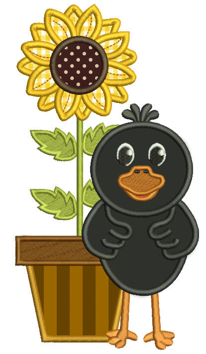 Cute Little Crow With a Sunflower Applique Machine Embroidery Design Digitized Pattern