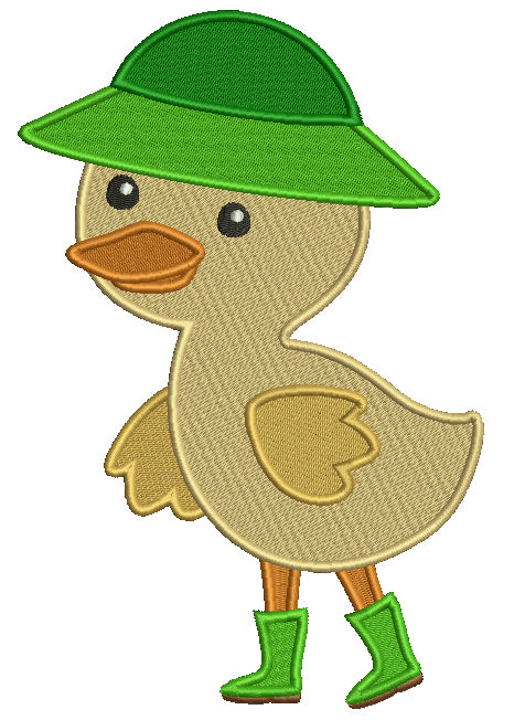 Cute Little Duck Wearing Rain Boots and a Hat Filled Machine Embroidery Design Digitized Pattern