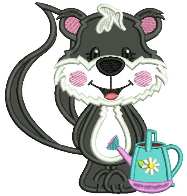 Cute Little Gardner Skunk Applique Machine Embroidery Design Digitized Pattern