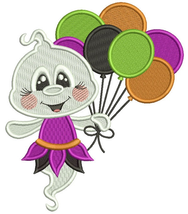 Cute Little Ghost Holding Balloons Halloween Filled Machine Embroidery Design Digitized Pattern