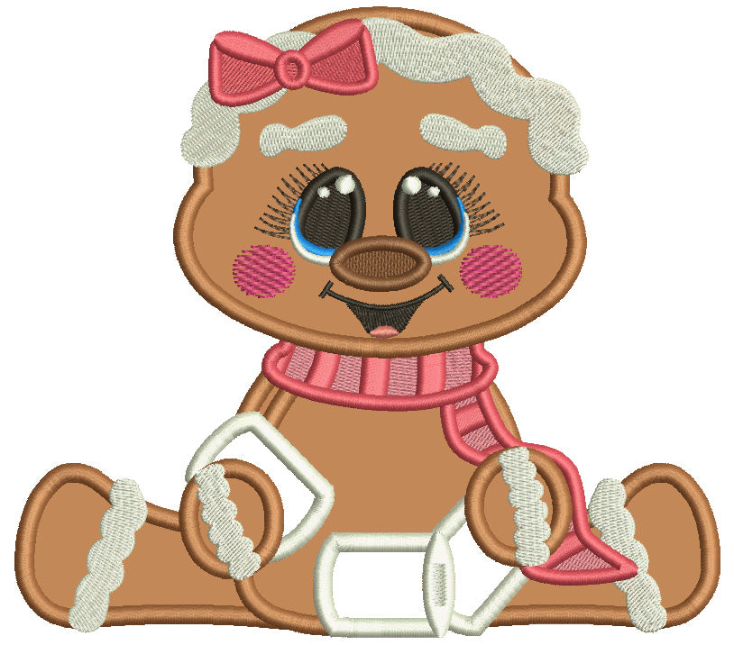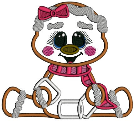 Cute Little Gingerbread Girl Playing With Snow Christmas Applique Machine Embroidery Design Digitized Pattern