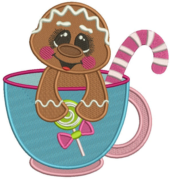 Cute Little Gingerbread Girl Sitting Inside A Cup Christmas Filled Machine Embroidery Design Digitized Pattern
