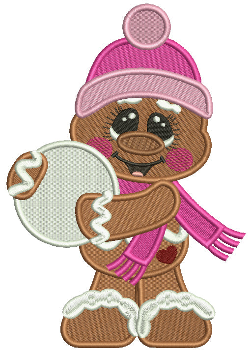 Cute Little Gingerbread Man With Snow Ball Filled Christmas Machine Embroidery Design Digitized Pattern