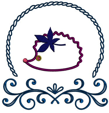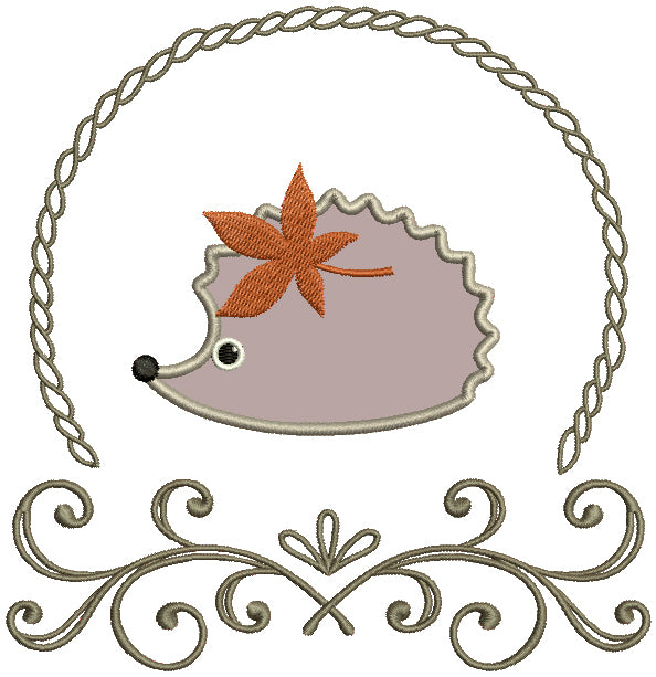 Cute Little Hedgehog With a Leaf Applique Machine Embroidery Design Digitized Pattern